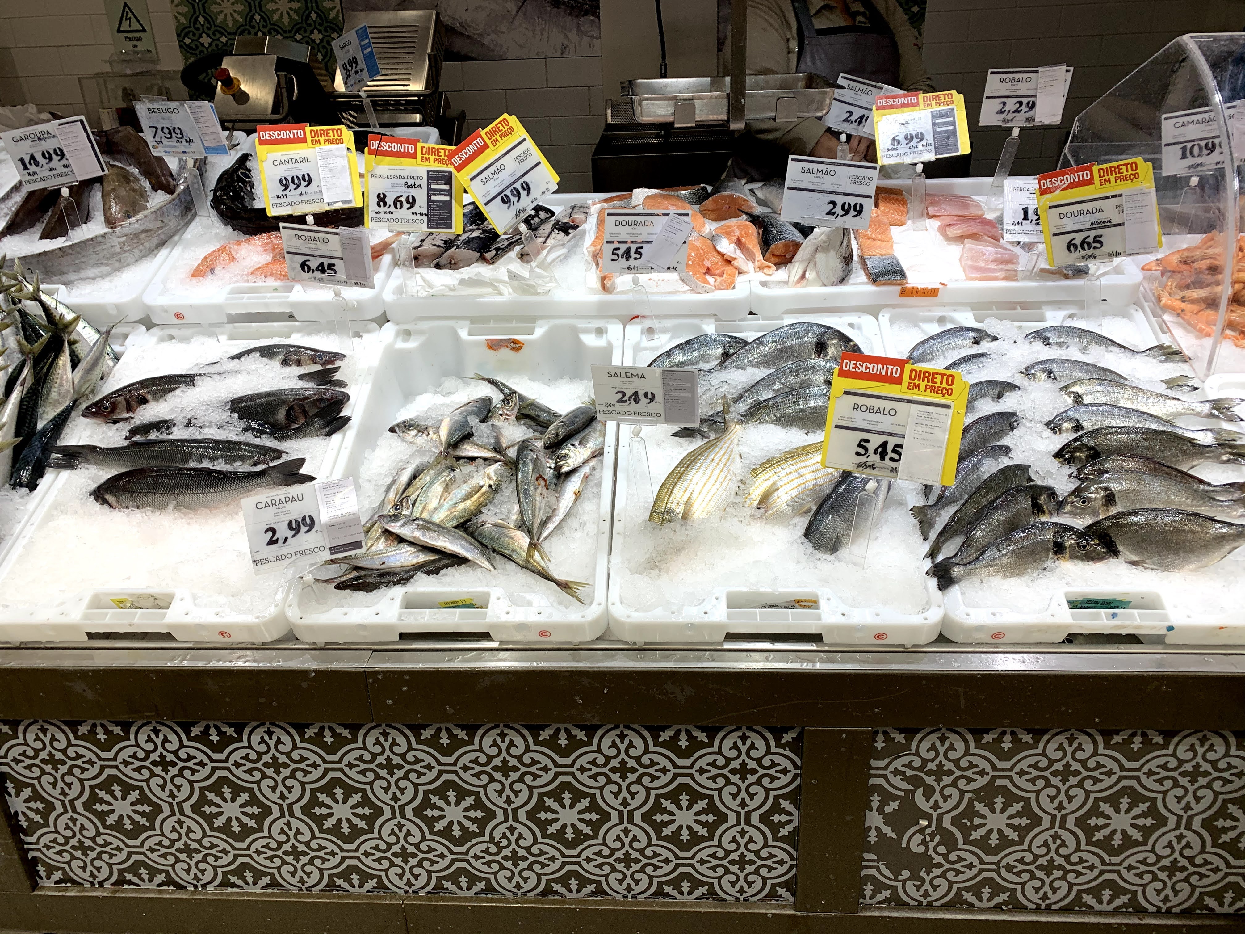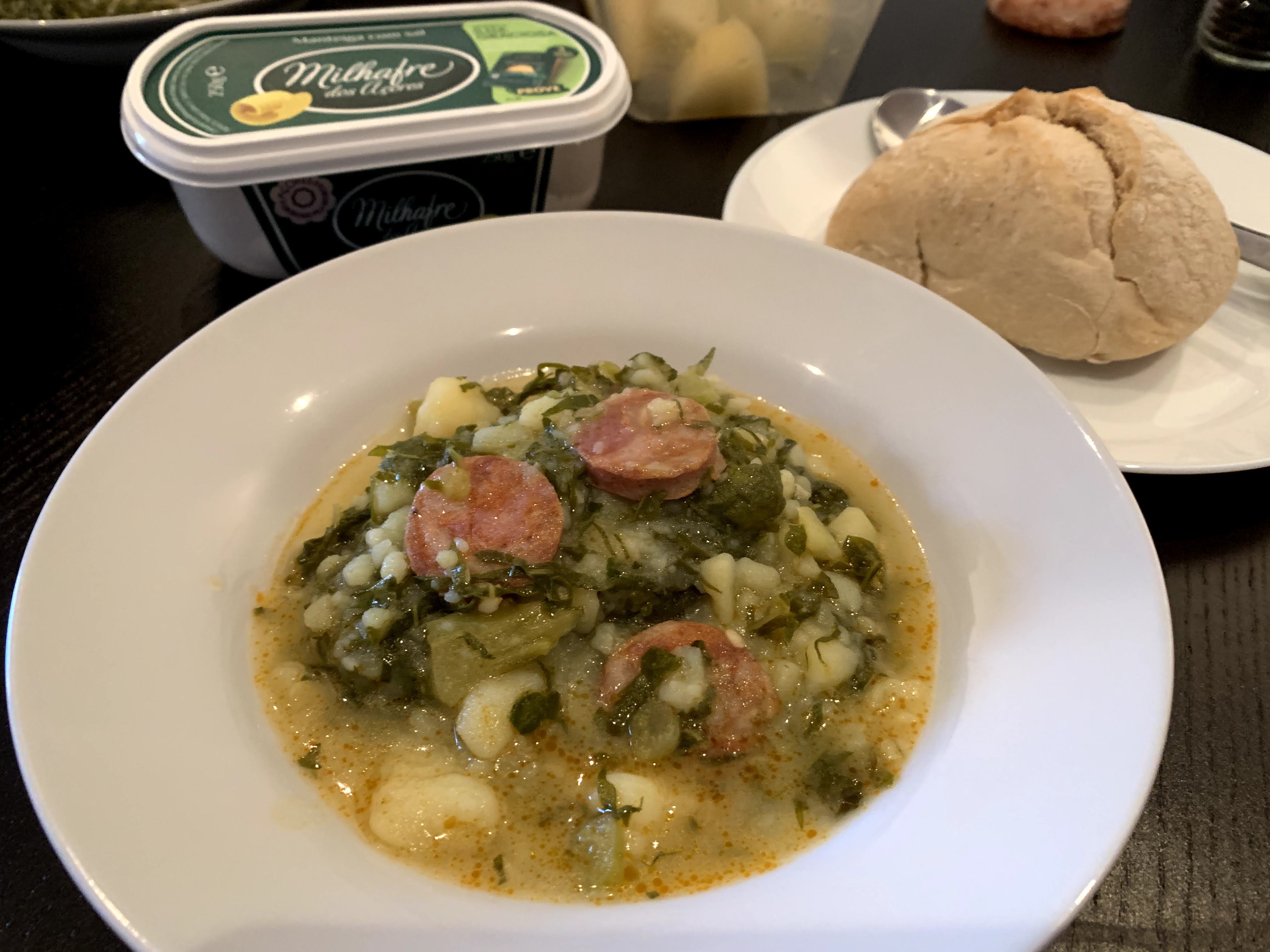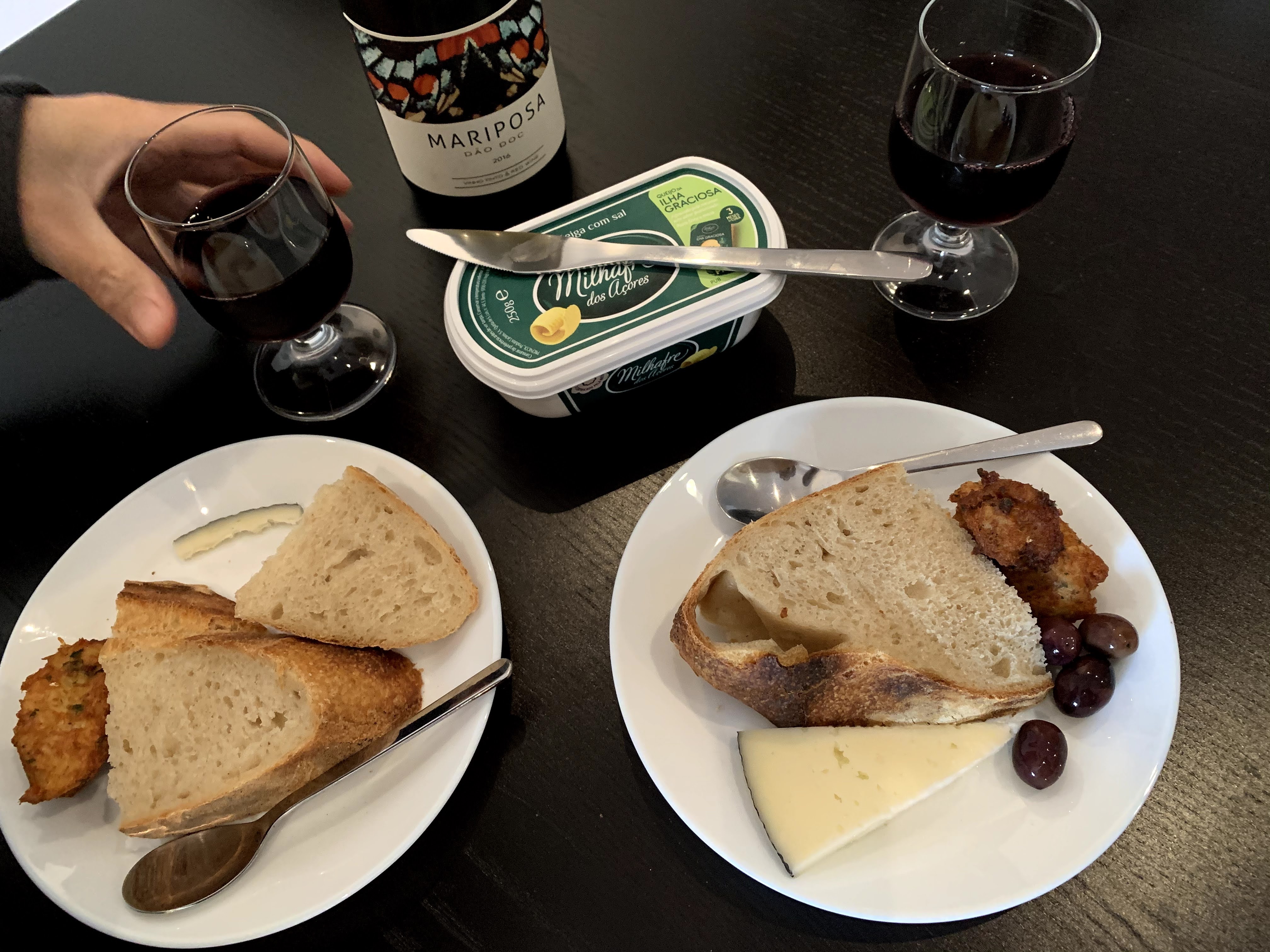 Breakfast: Caldo verde, rustic bread & butter @ 8:15 a.m.We went to a supermarket after breakfast. In Lisbon most supermarkets have seafood sections like this. Isn’t it amazing!?Picked up our favorite bread as well. It tastes simply like wheat by the slow fermentation process. This huge bread, probably 500-750g with a lot of love costs only 3€.“Lanchar” (Snacking in Portuguese) @ 11:00 a.m.Lunch: Chop steak (Costeletas) with yellow bell pepper, red wine @ 1:40 p.m.Chocolate time!Evening snack: Soba @ 5:00 p.m.Ginja/Ginjinha, Portuguese cherry liquor @ 5:15 p.m.