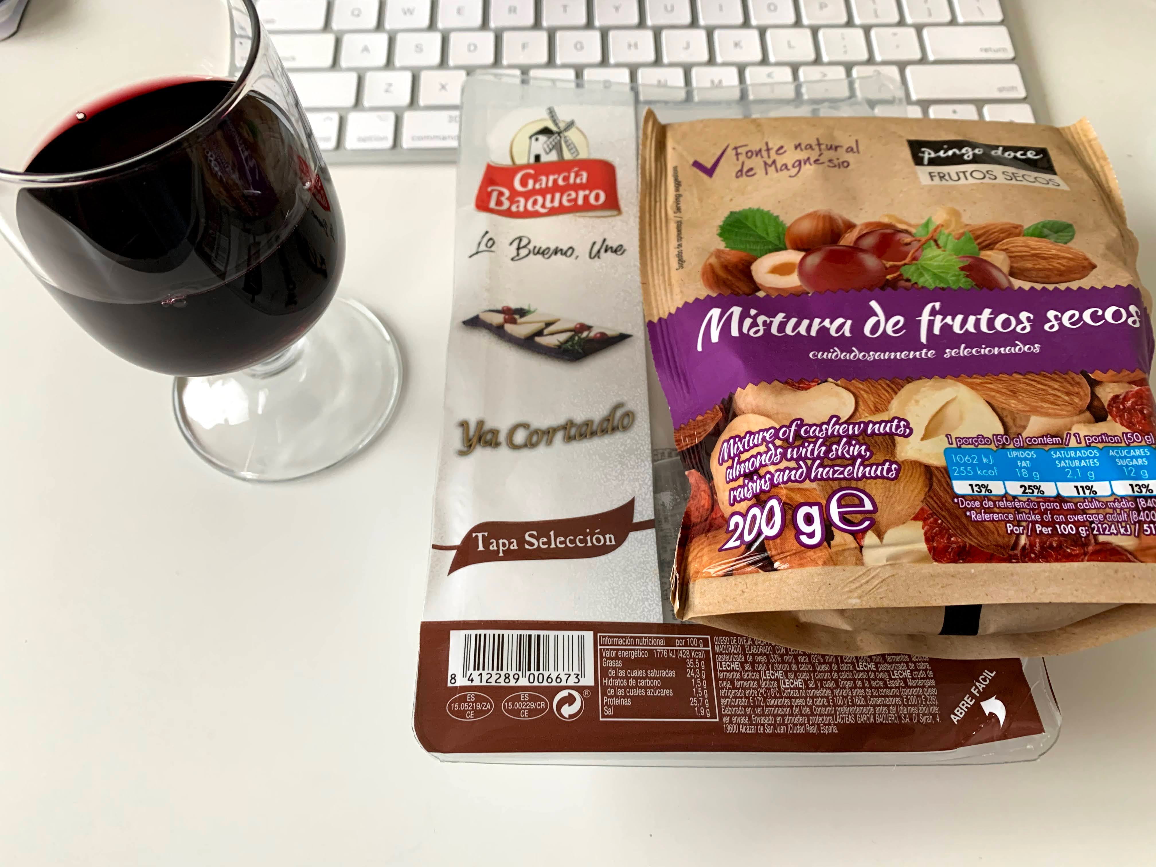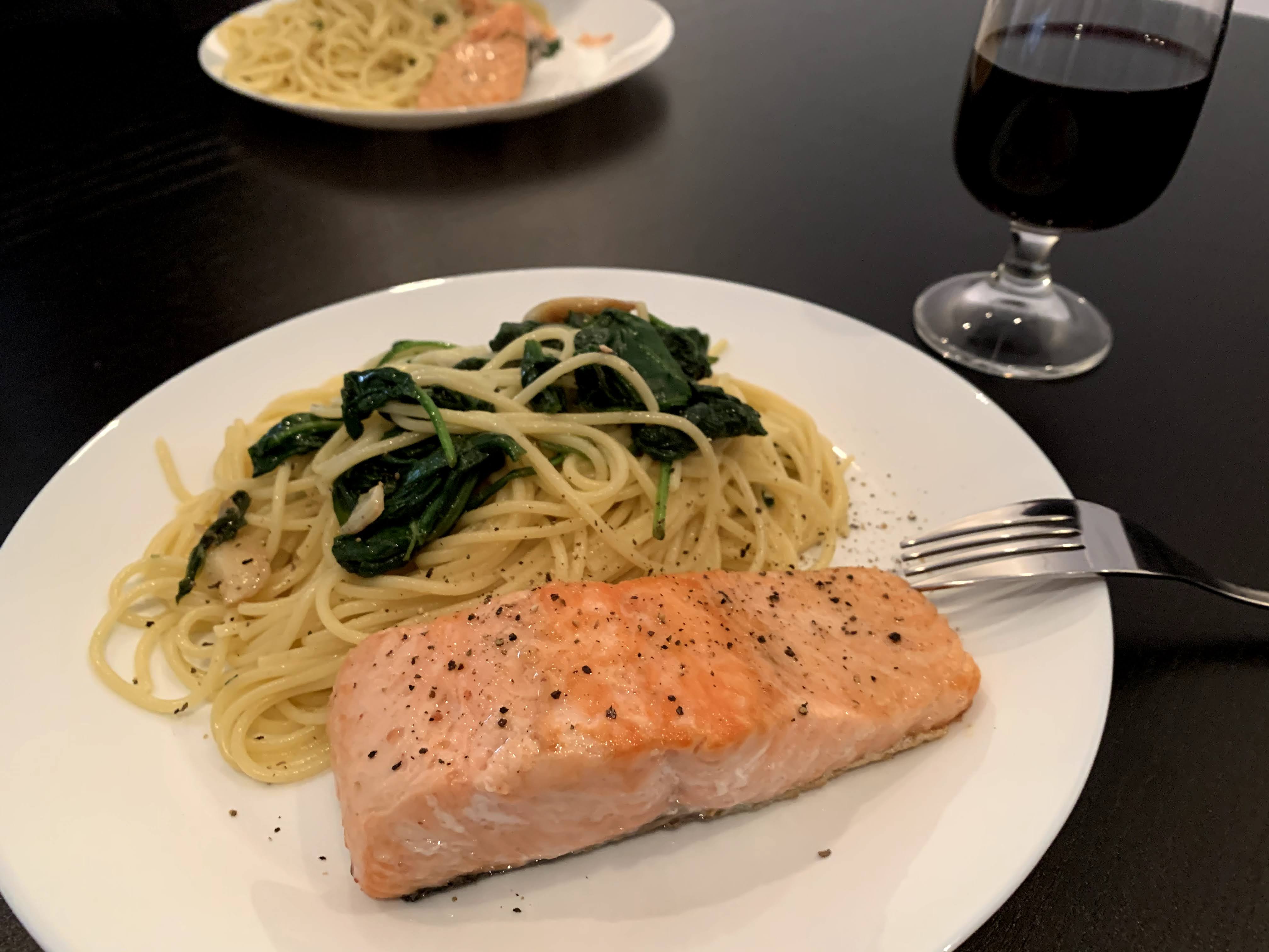 Snacking before lunch @ 12:20 p.m.Lunch: Salmon, spaghetti, spinach, red wine @ 1:00 p.m.Chocolate time!We basically drink hot water with lemon (carioca de limão) with a bit honey while fasting.