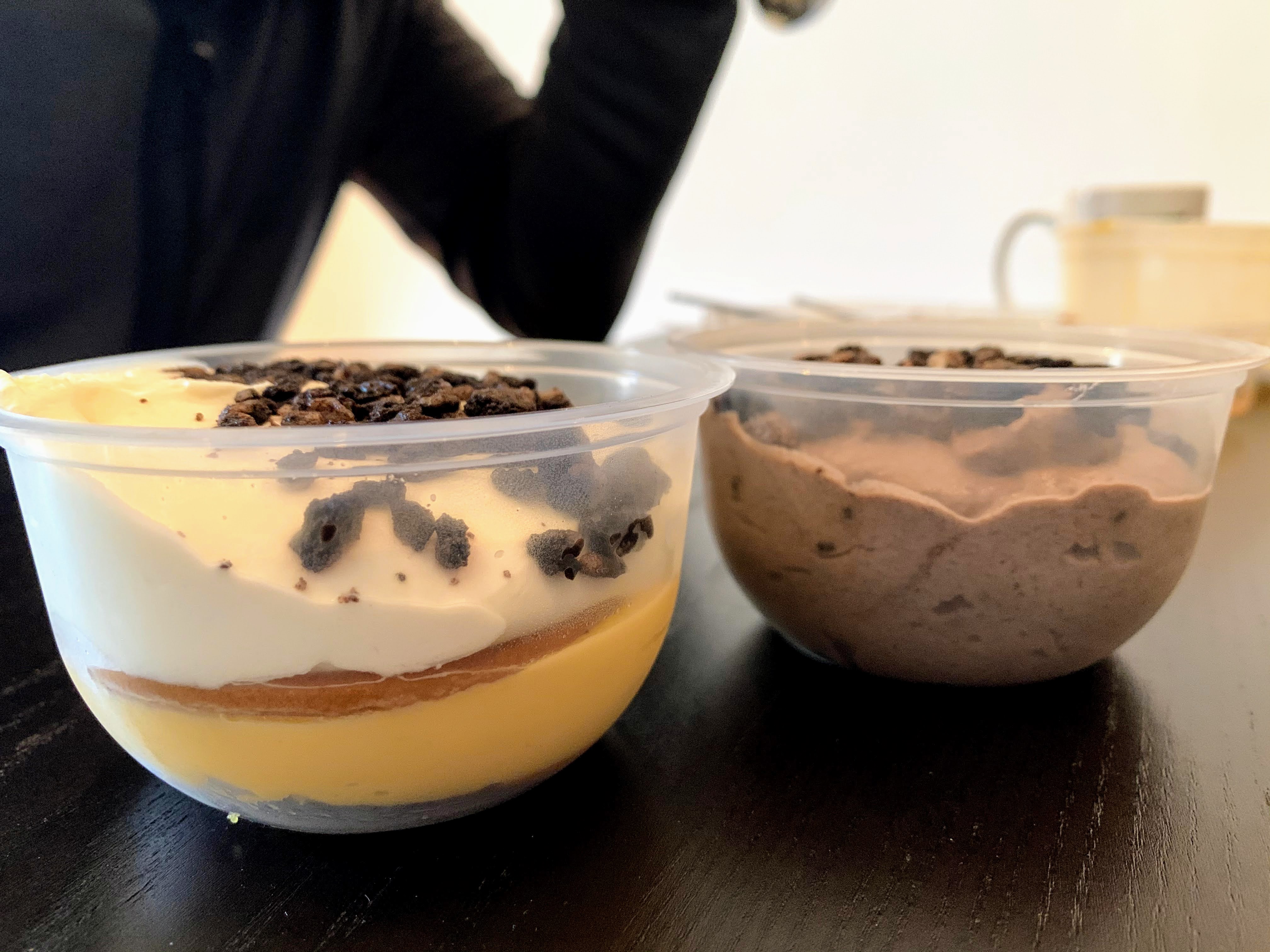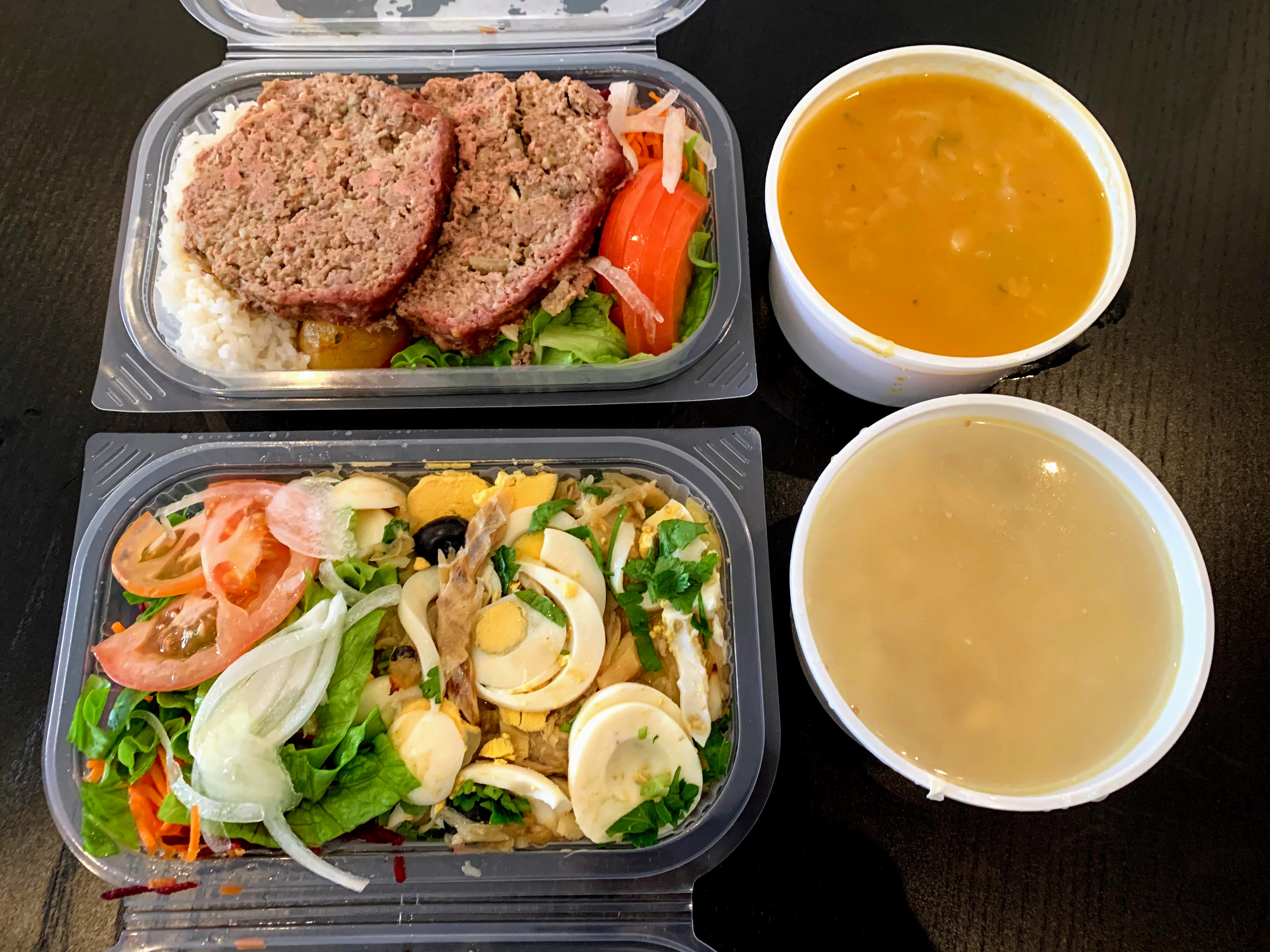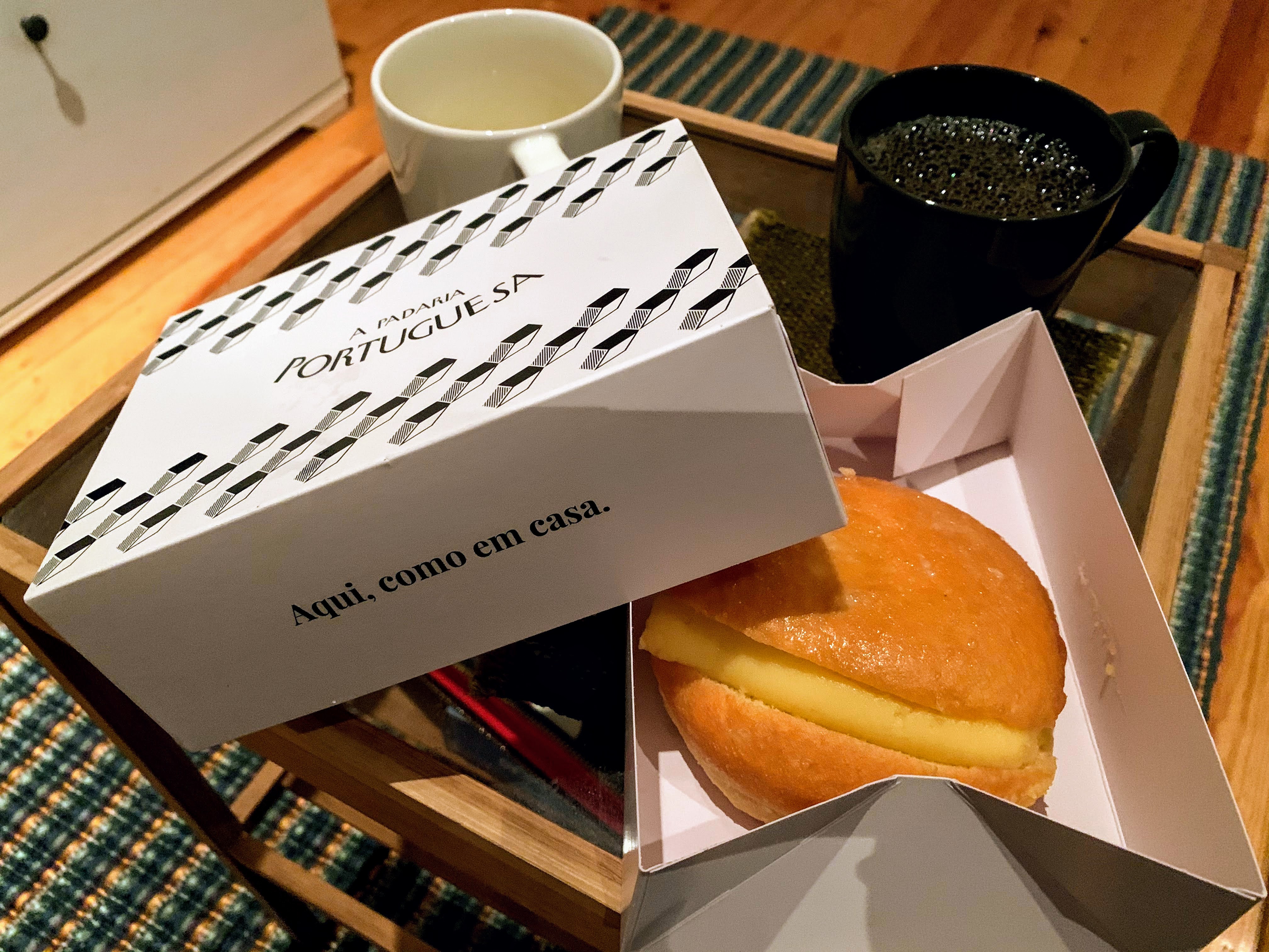 Breakfast: Bola de Berlim, coffee @ 7:20 a.m.I picked up lunch at a local “to-go” place. A lunch with soup & dessert costs 5.75€. What a deal! @ 12:45 p.m.Mine: Bacalhau à Gomes Sá with salad, white wineHis: Rolo de carne with rice, roasted potatoes, saladDessert: Doce da casa and Mousse de Oreo
