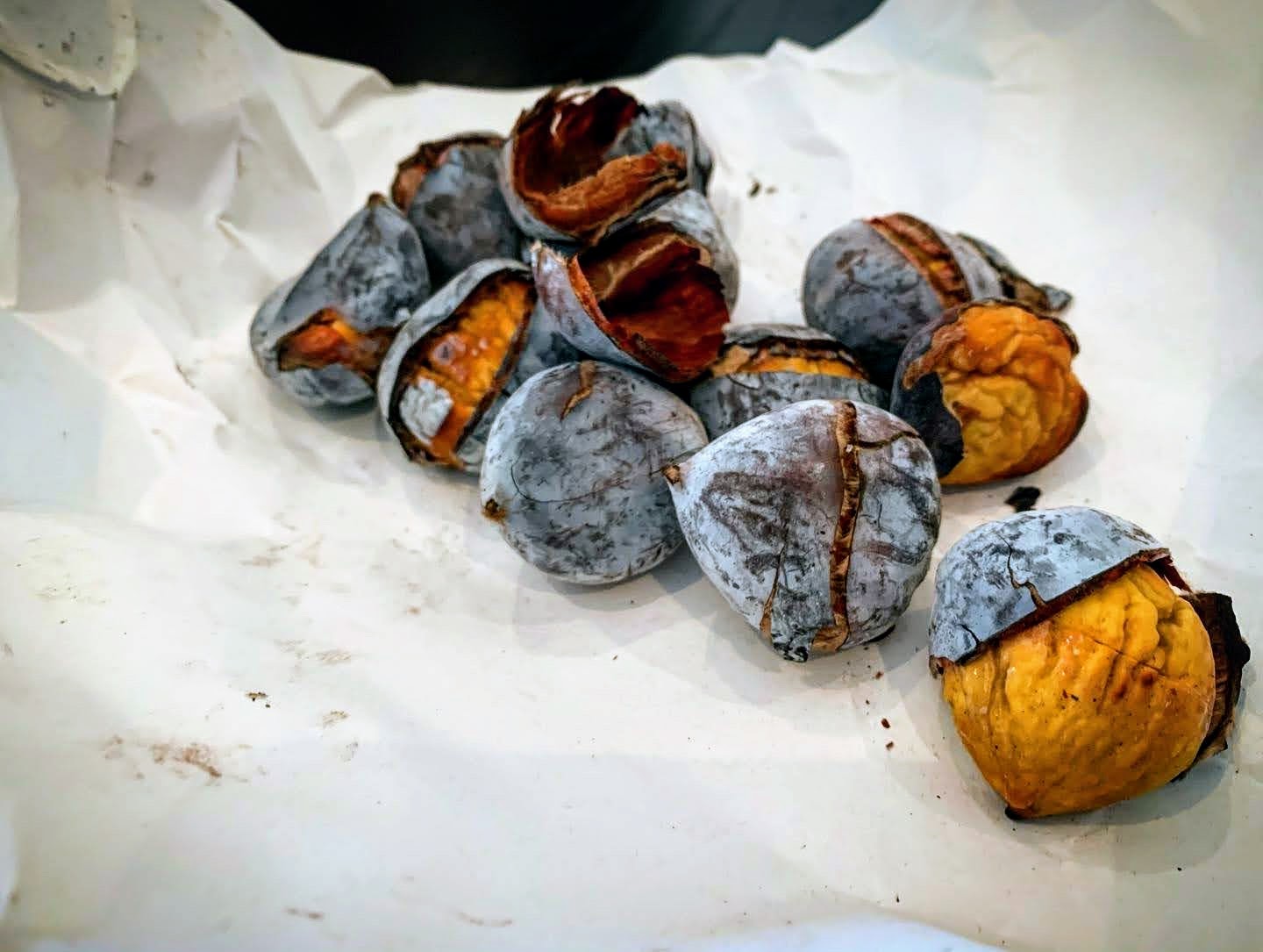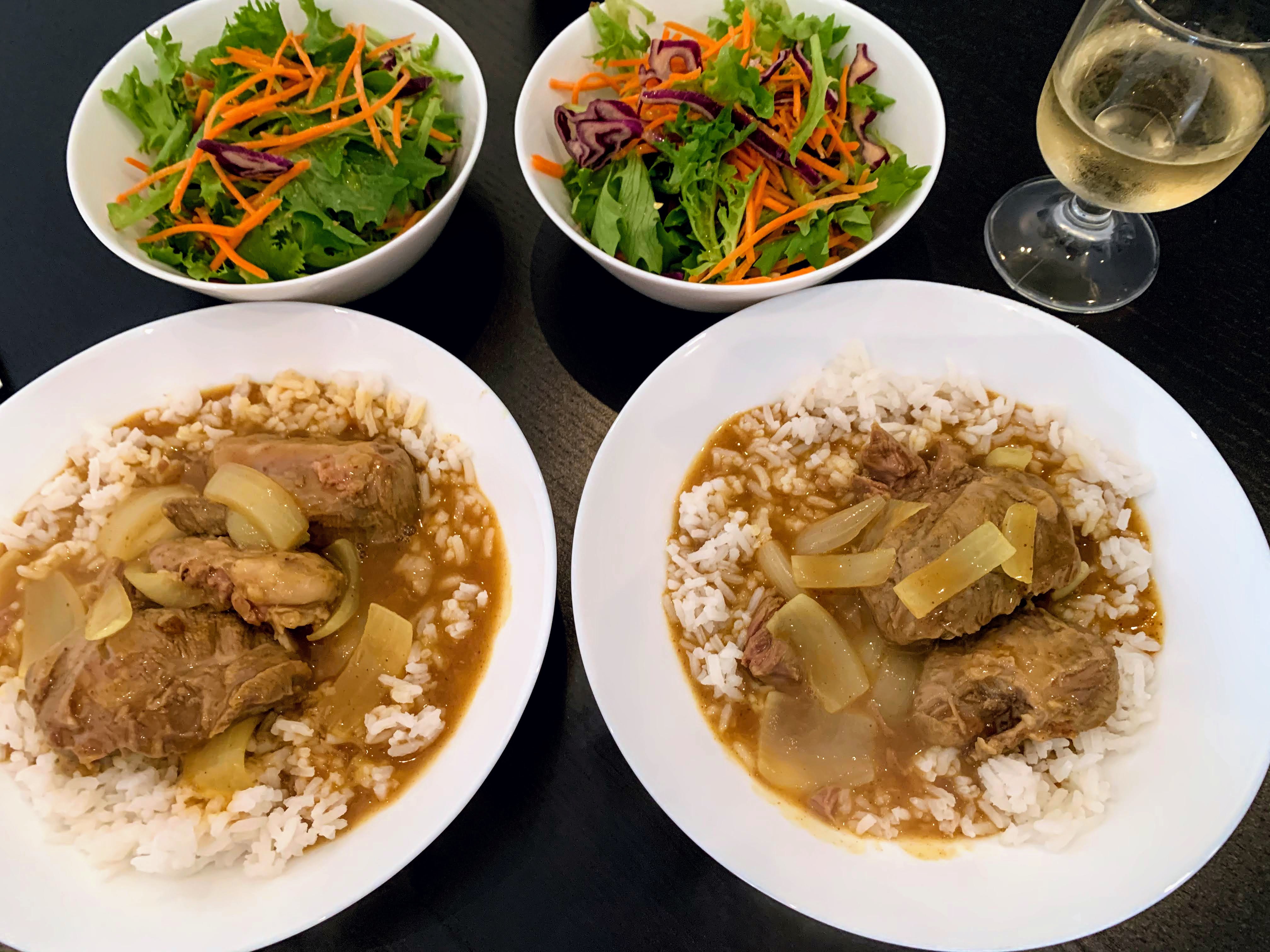 Breakfast: Pastel de feijão, cheese omelette, salad, coffee @ 7:50 a.m.Roasted chestnuts from a street vender @ 12:00 p.m.Lunch: Pork cheek (Bochechas) curry, salad, white wine (Alvarinho) @ 12:50 p.m.Snack: Instant noodle with egg split by two @ 4:30 p.m.