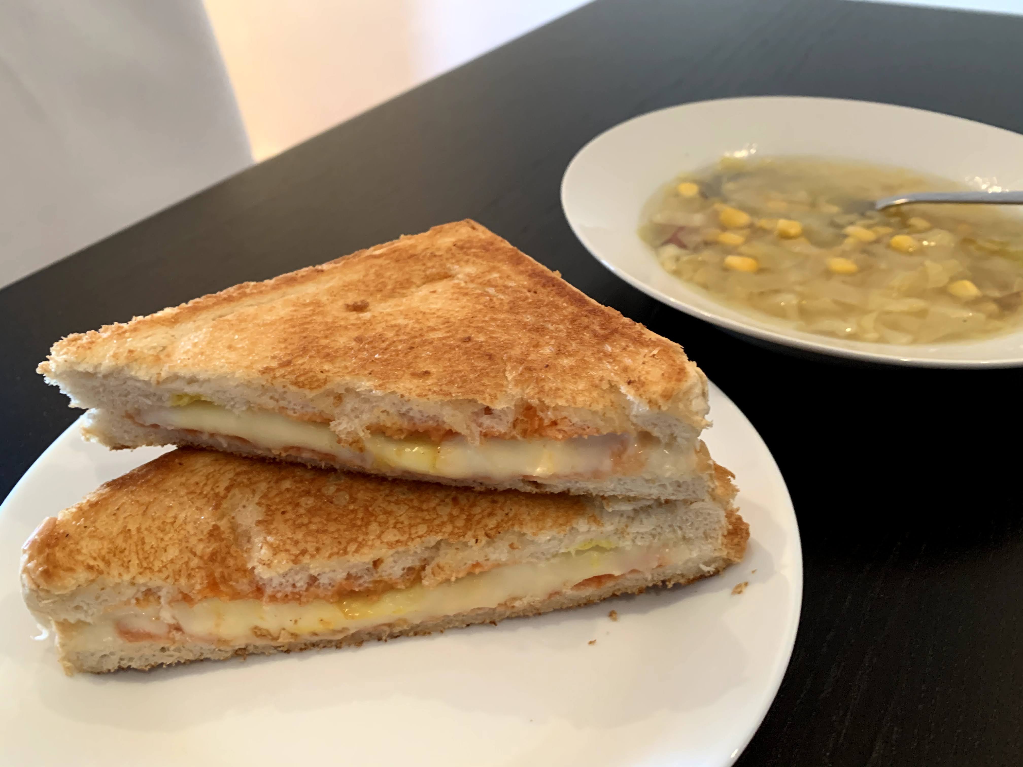 Breakfast: Grilled cheese, cabbage soup, coffee @ 8:45 a.m.