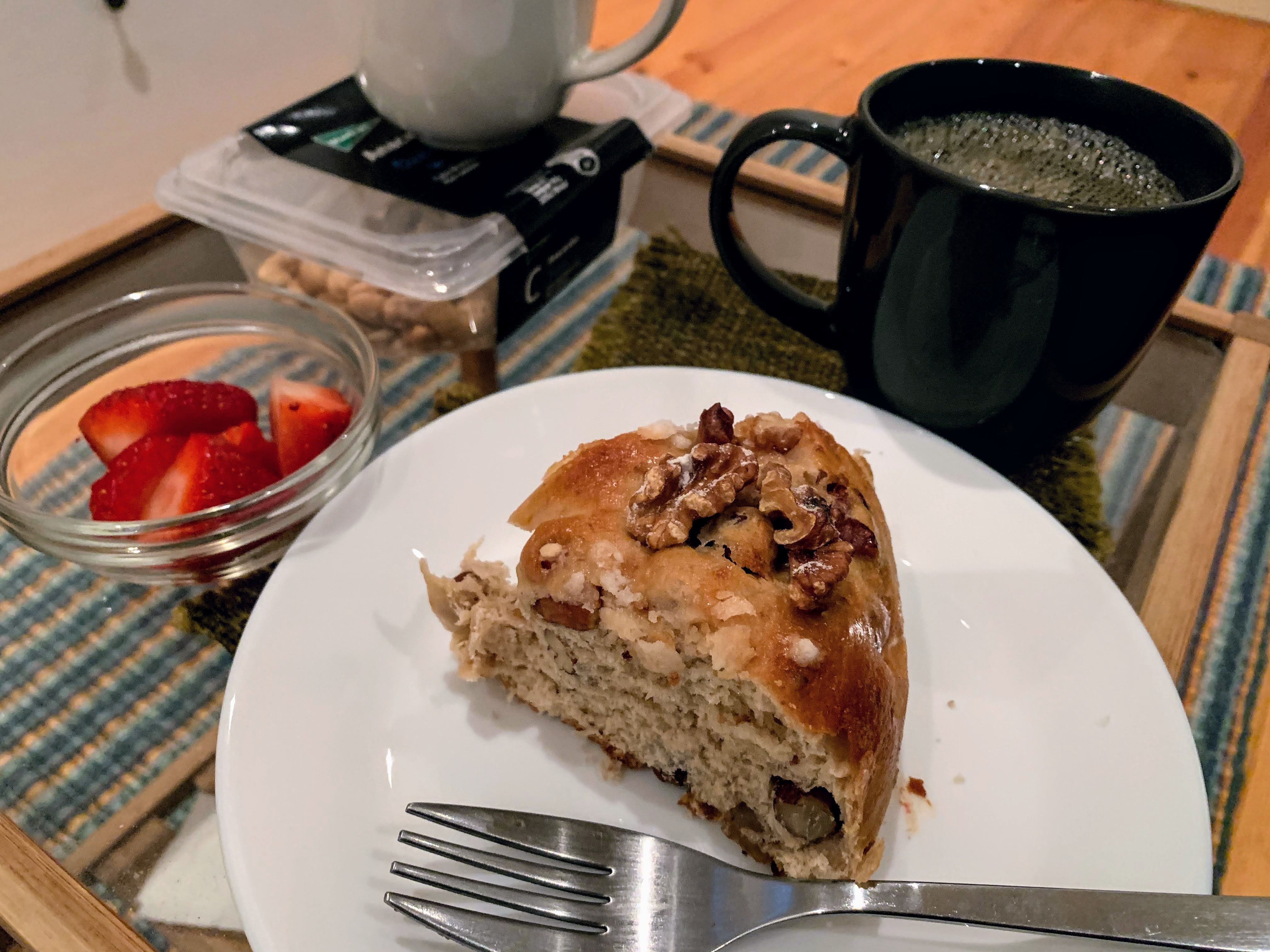 Breakfast: Bolo Rainha from Terrapão, strawberries, coffee @ 7:10 a.m.Soup: Caldo verde @ 10:20 a.m.