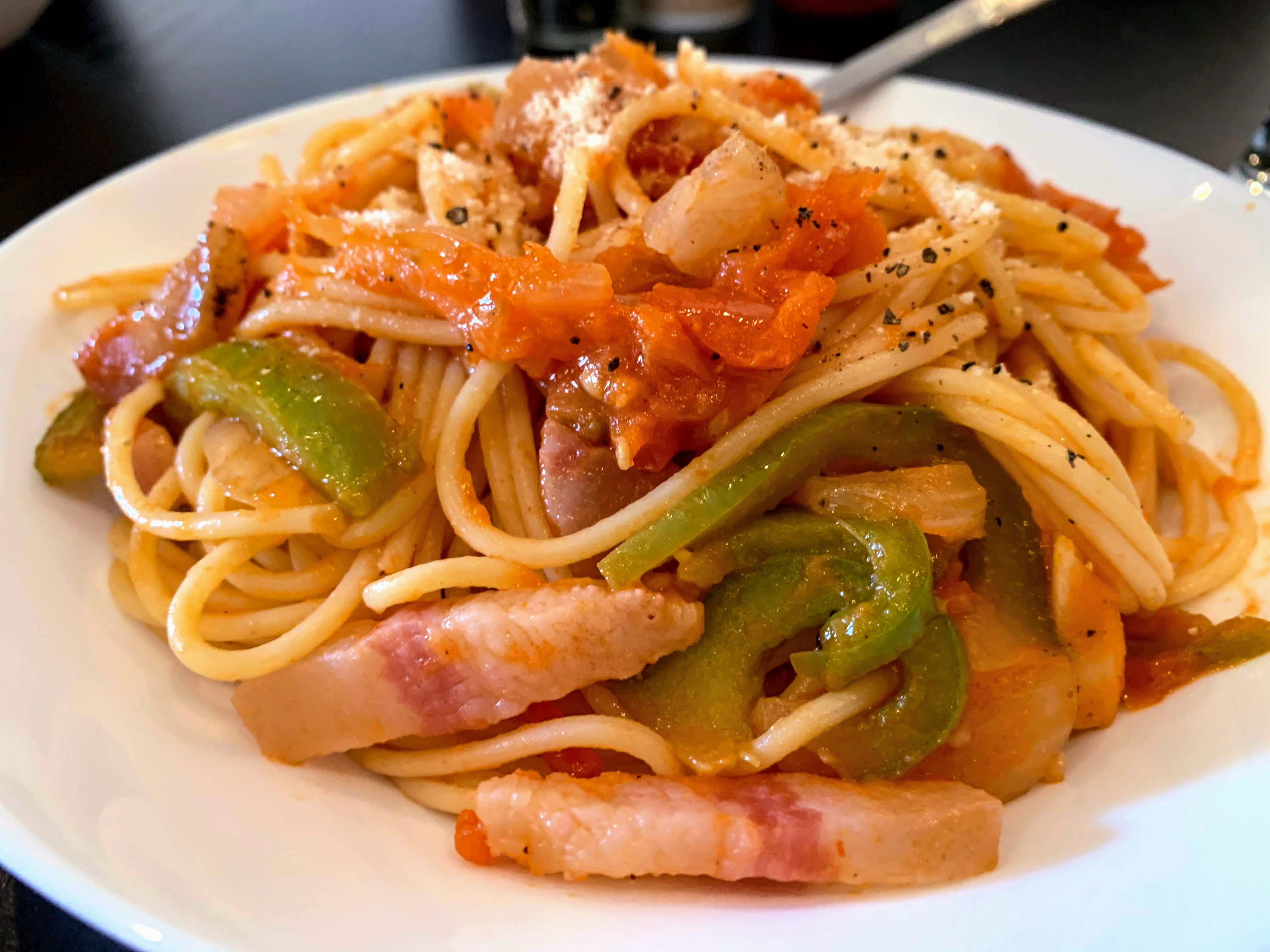 HomeTomato Spaghetti with Guanciale January 10, 2021January 10, 2021 myeverydayeats Breakfast: French toast with Nutella & strawberries, coffee @ 9:30 a.m. Lunch: Upgraded Napolitan with Guanciale, red wine @ 1:00 p.m. Guanciale looks so fatty but so flavorful! Yogurt @ 8:20 p.m. (Oh no I got hungry…)