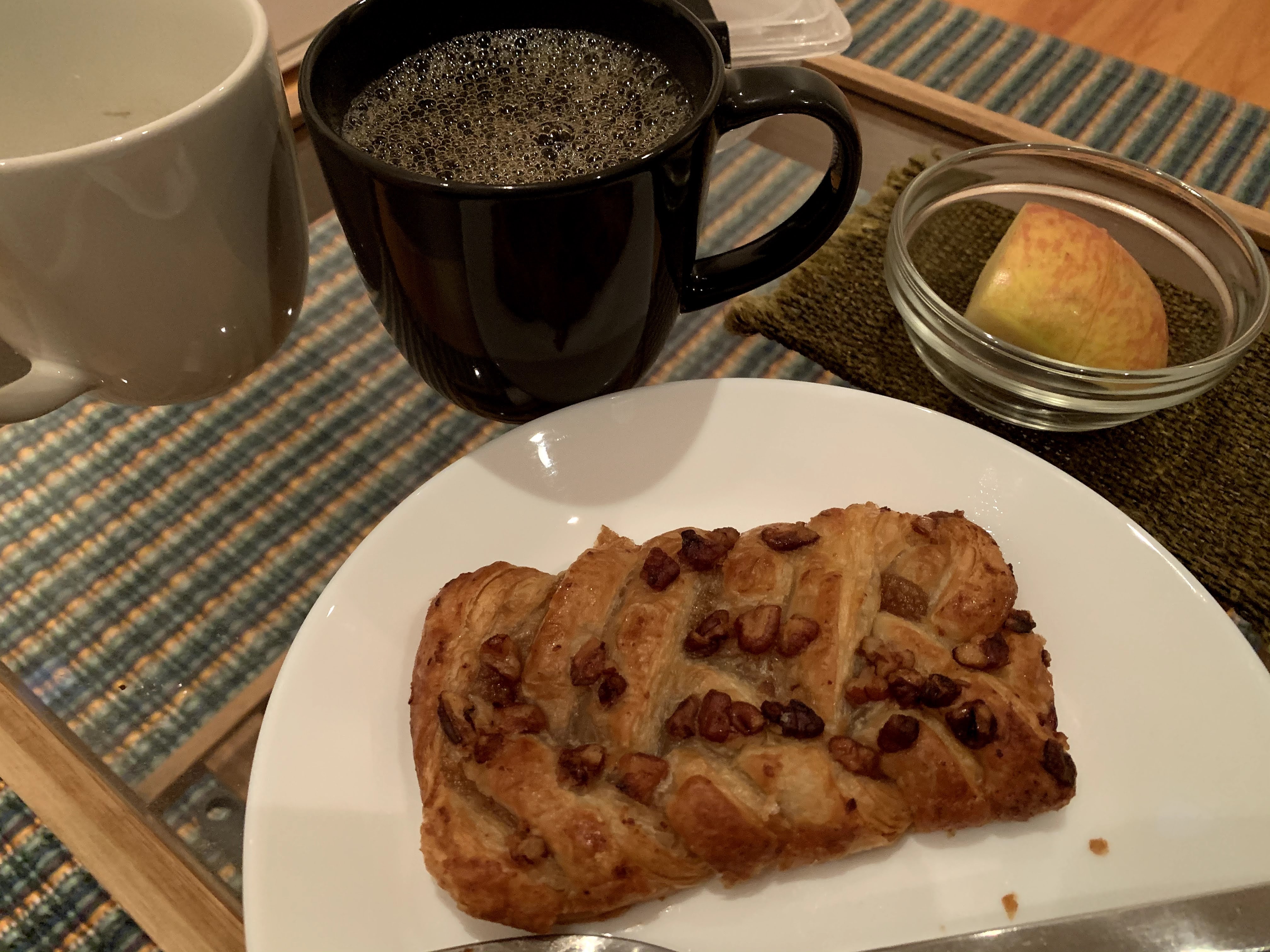 Breakfast: Orange, pão de lo, coffee @ 8:00 a.m.