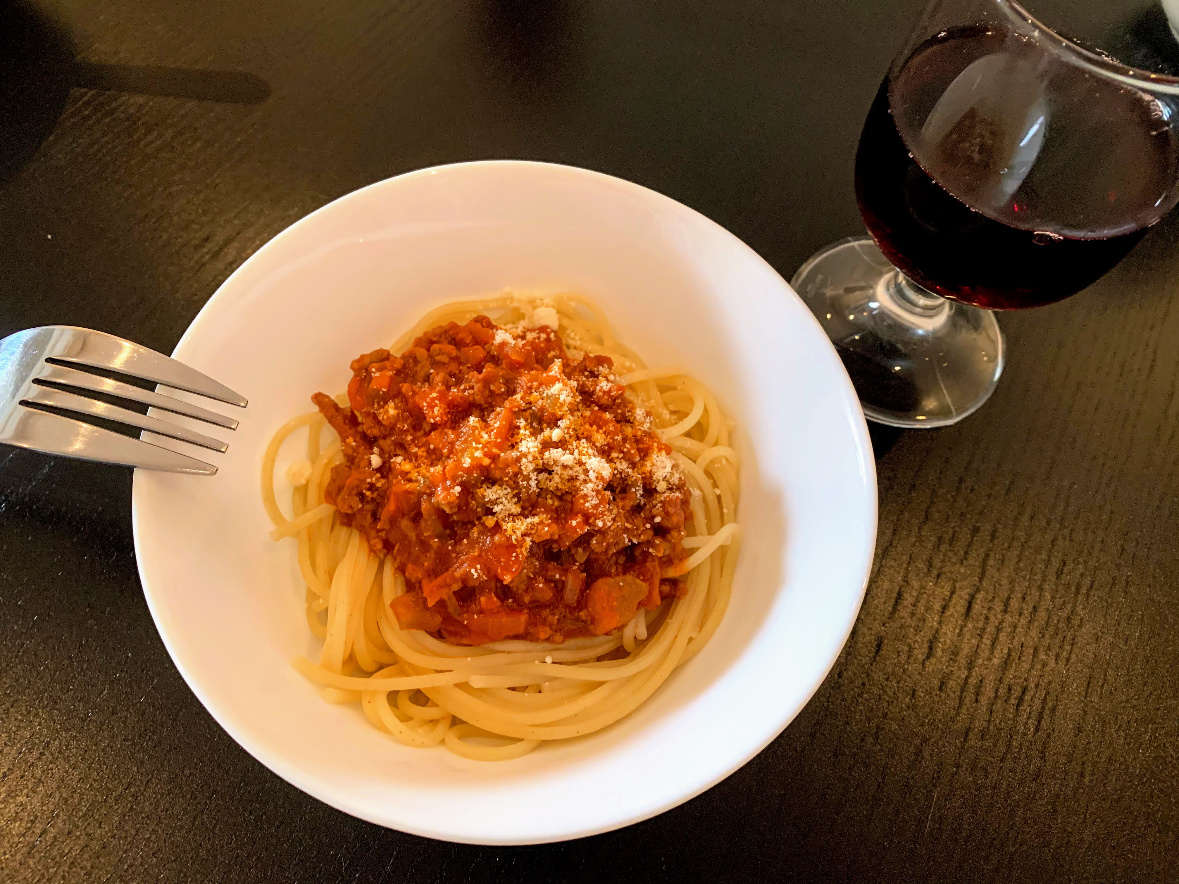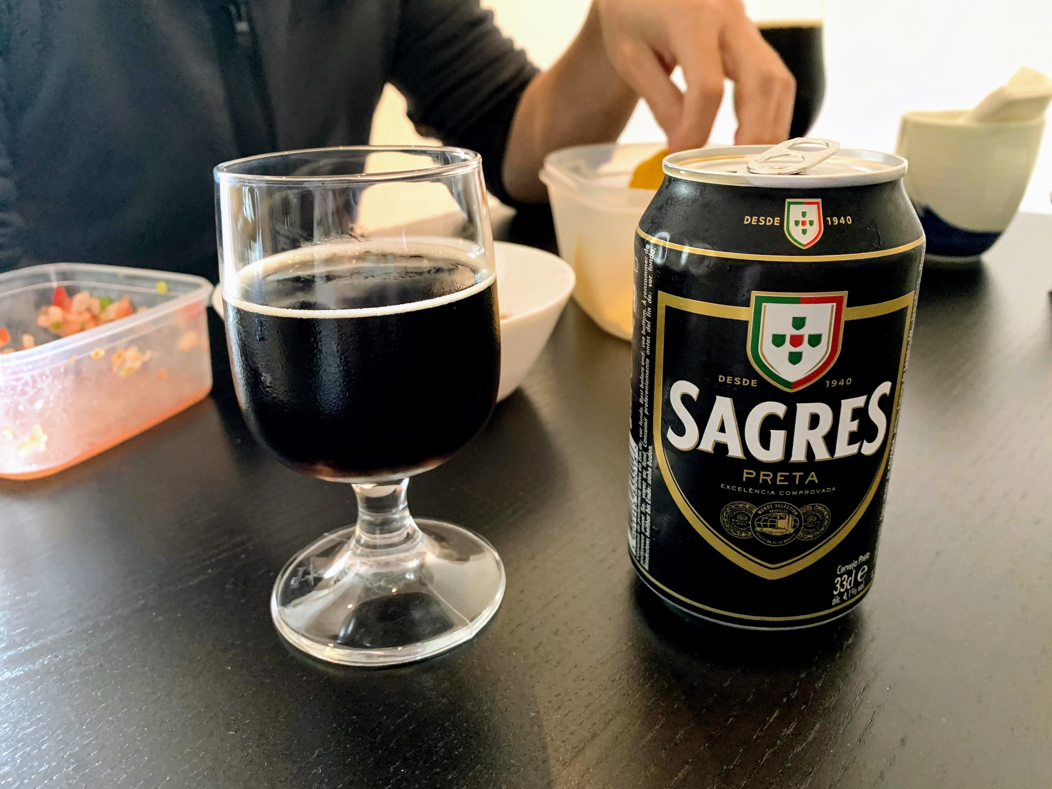 Lunch: Nacho, beer, meat sauce spaghetti @ 1:00 p.m., Sagres Preta tastes so good.