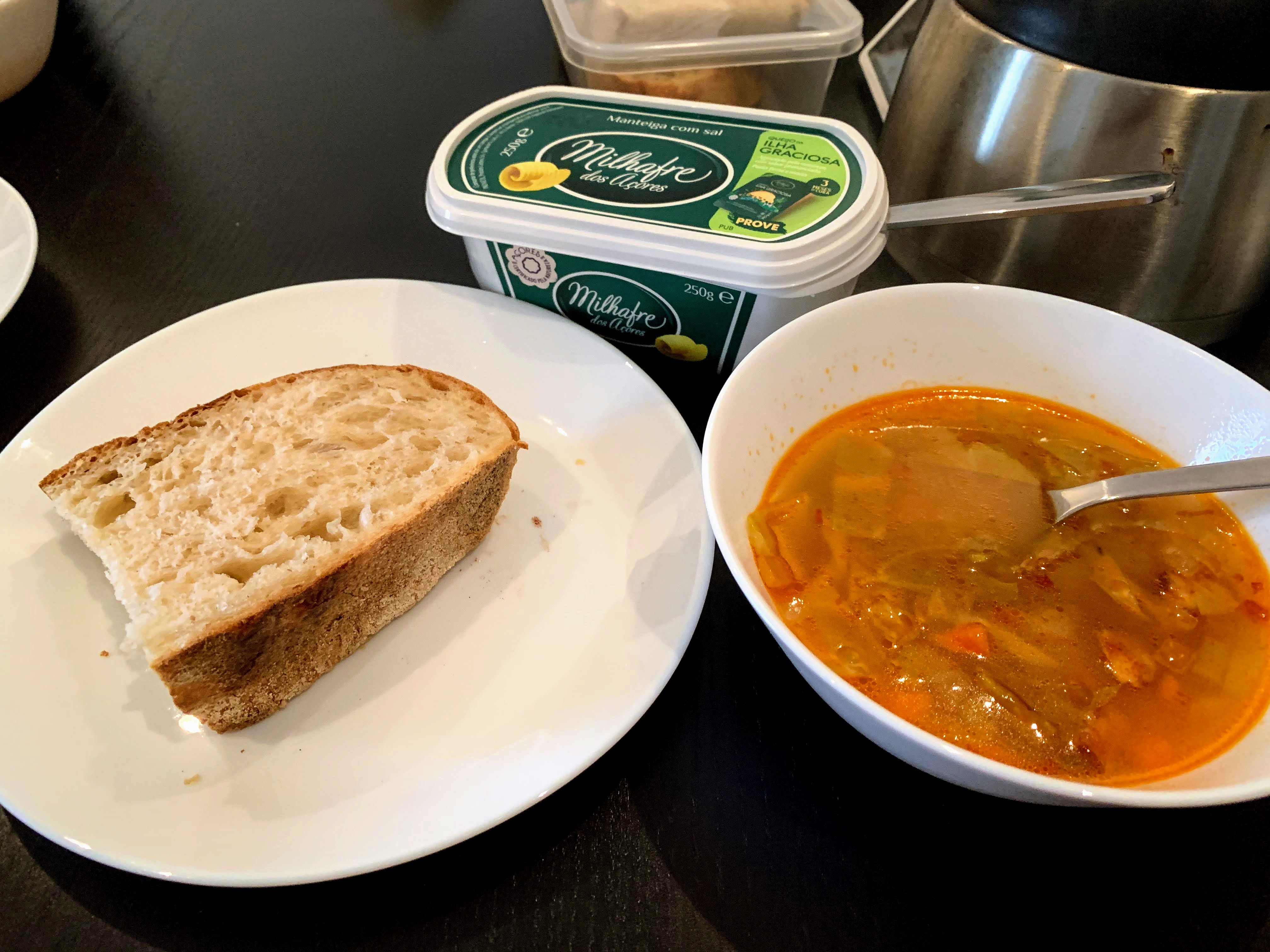 Breakfast: Strawberries, chocolate pastry, coffee @ 7:00 a.m.Soup & Bread @ 9:30 a.m., we went to our favorite bakery, Terrapão to pick up a freshly-baked bread, Trigo. It tasted good as always.Lunch: Ginger pork, pimento padrão (very similar to shishito peppers), rice @ 12:50 p.m.