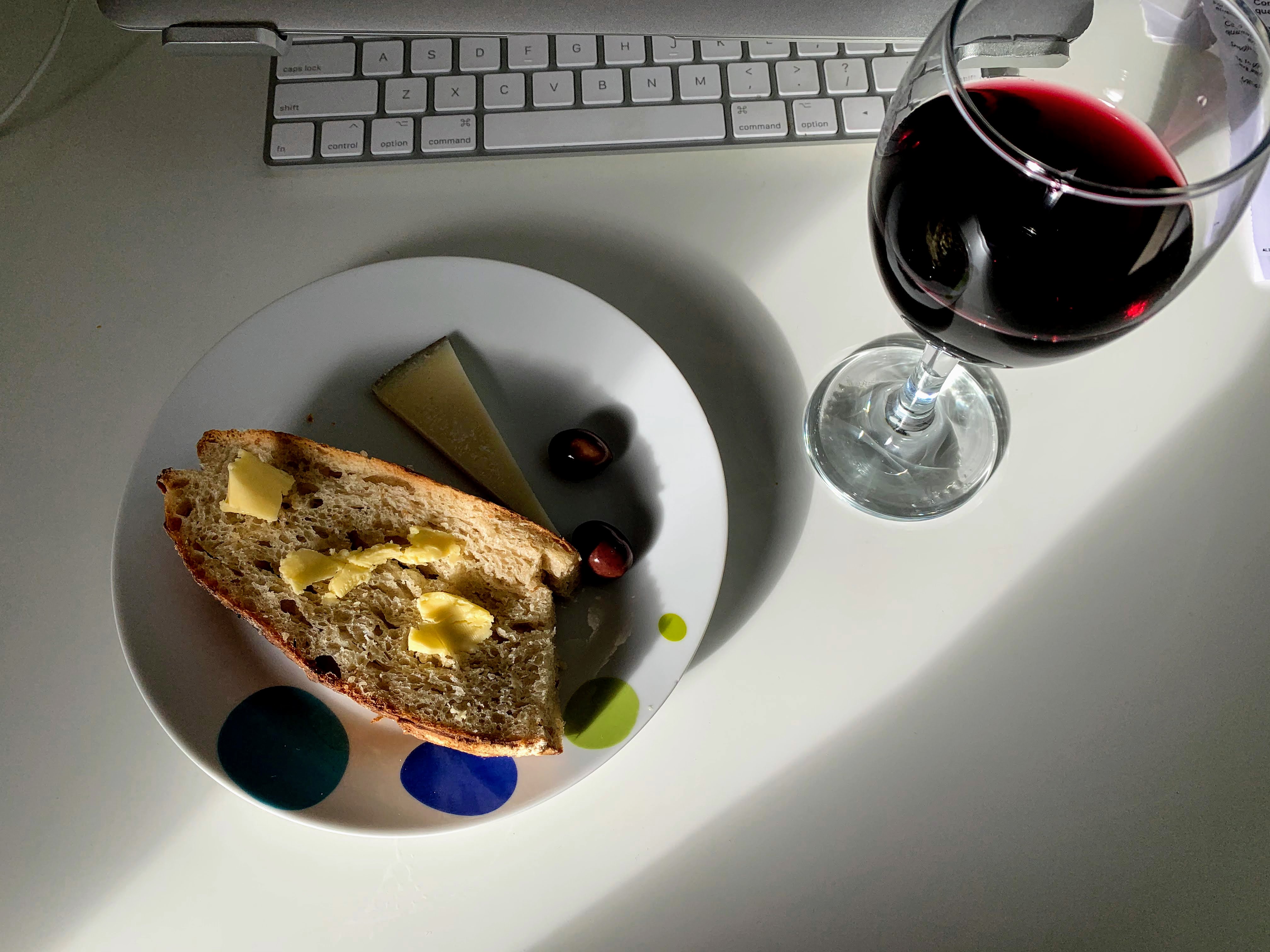 Casa Ferreirinha, Papa Figos, Tinto, Douro Portugal: A typical Douro red, well-balanced and smooth. Available for 6-8€ at a local supermarket. One of advantages living in Portugal is enjoying great wine daily-basis like this for less than $10!Lanche: Bread & butter, cheese, olives, red wine @ 3:45 p.m.