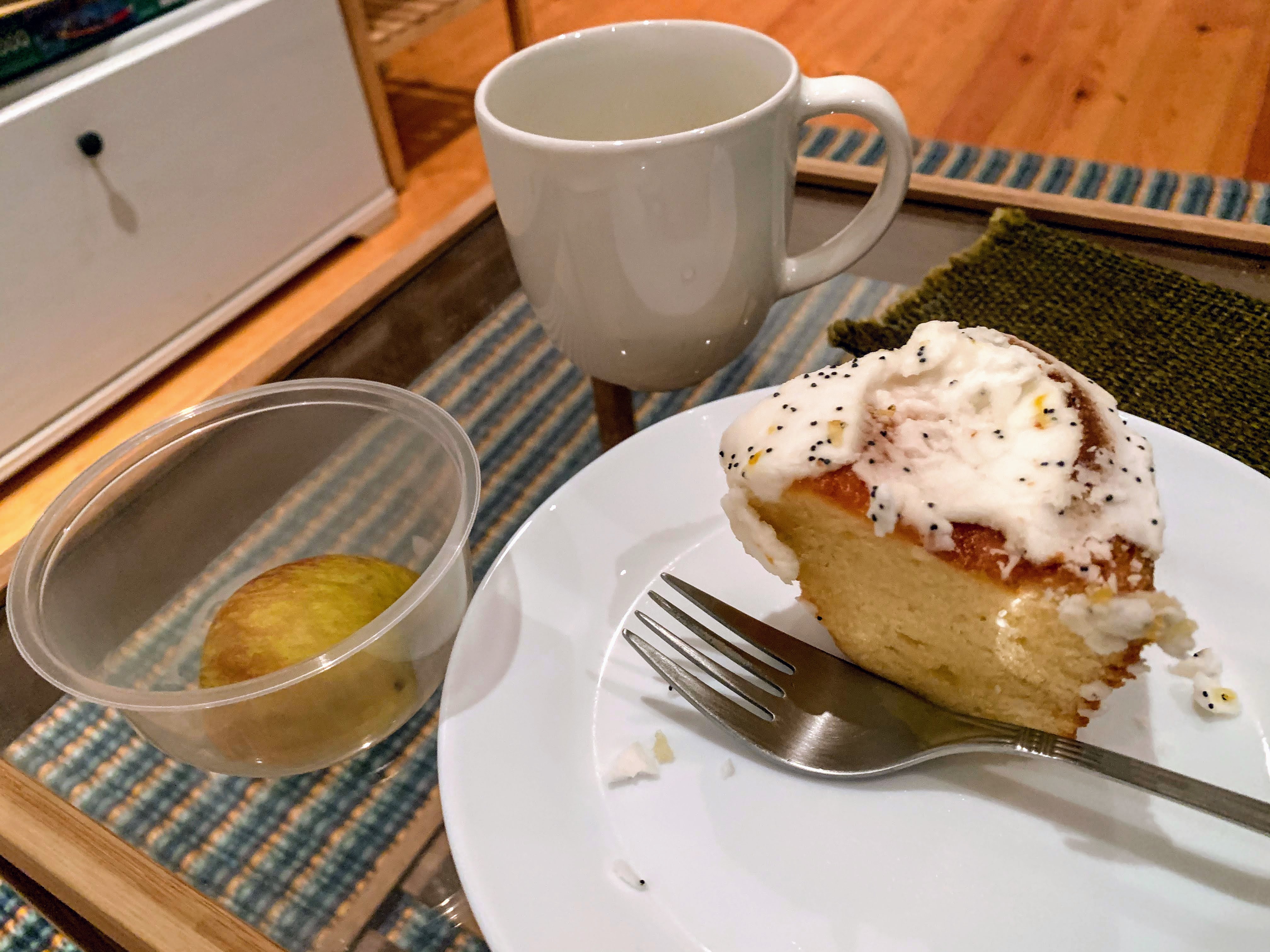 Bolo de limão, apple, coffee @ 6:45 a.m., Canja soup @ 10:20 a.m.