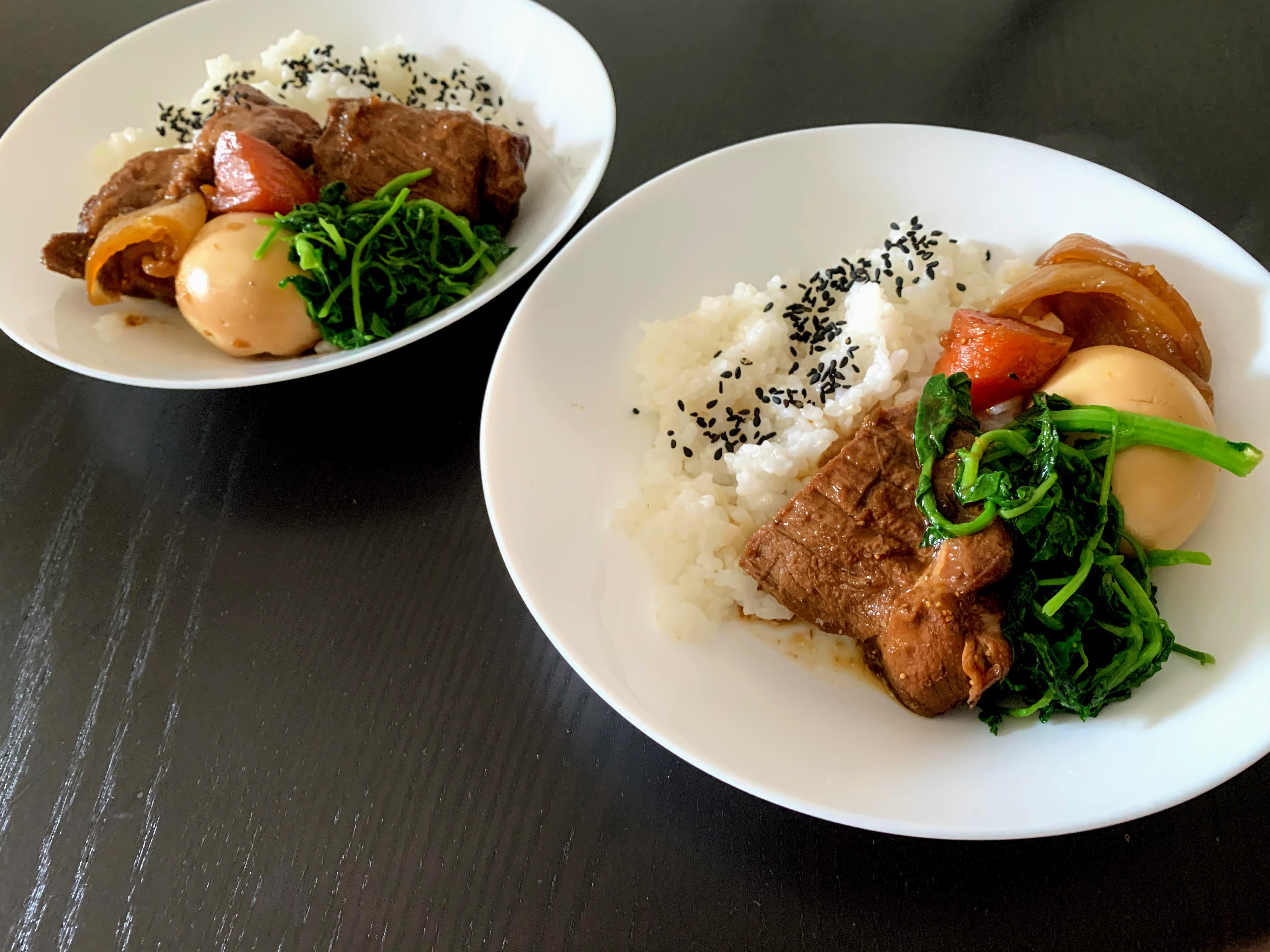 Lunch: Asian pork with cress, egg, carrot, onion, rice @ 1:30 p.m.