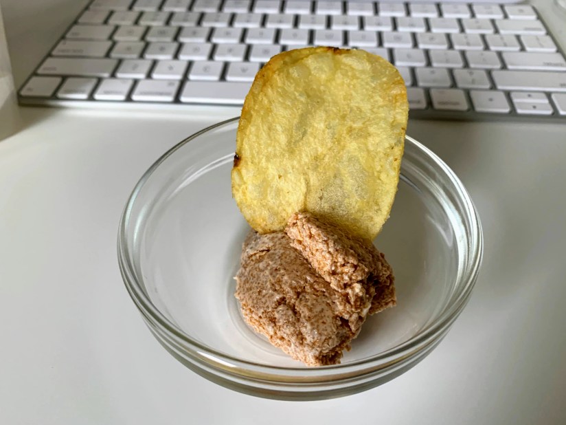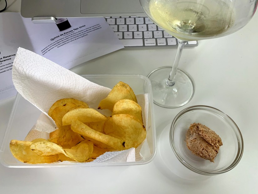 Opened a bottle of Portuguese white, Quinta dos Termos Reserva, Beira Interior. Citrusy and refreshing. Mixed fish egg with cream cheese and dipped with chips. Perfect!