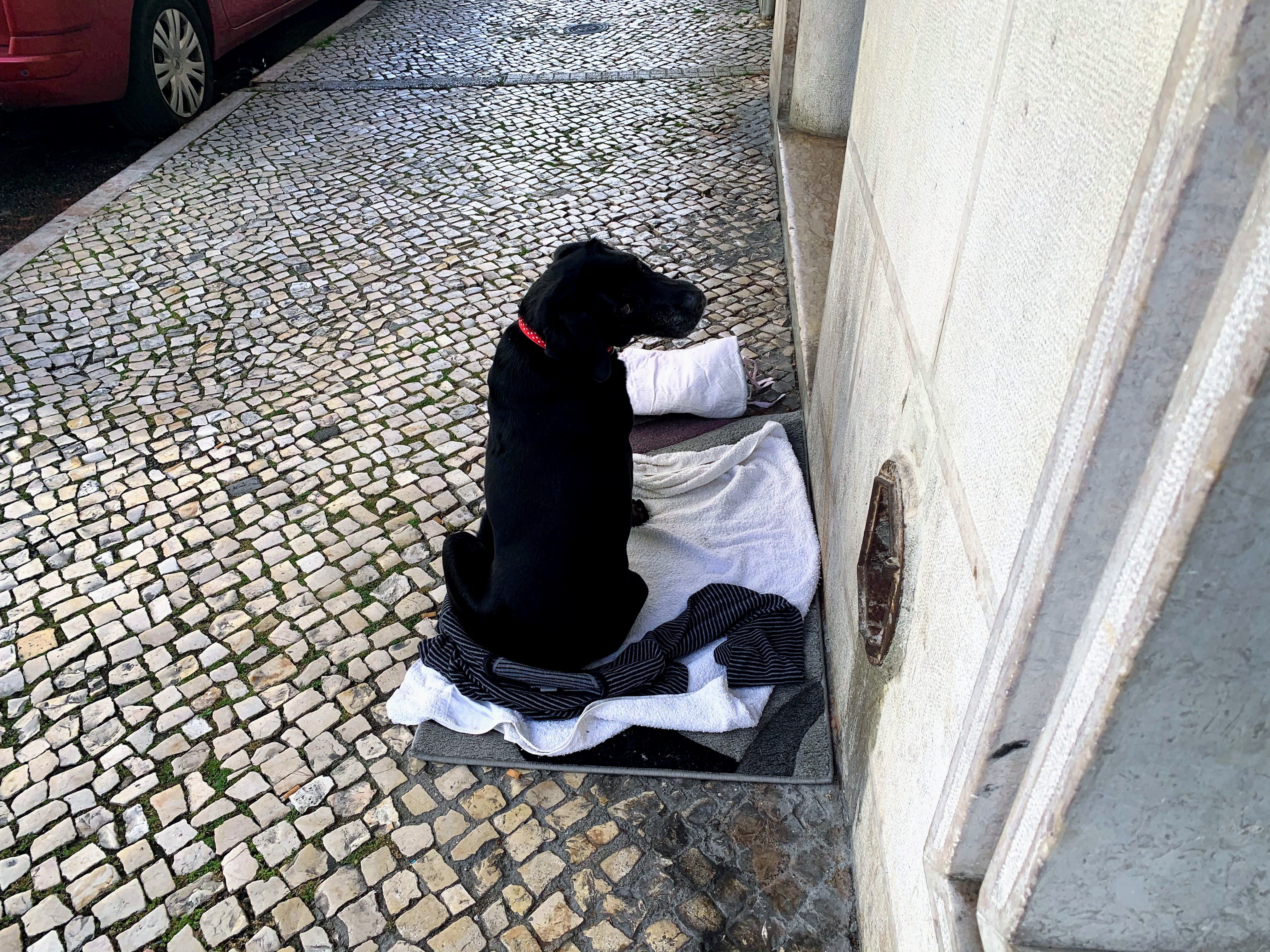 Beer & Wine, HomeGinger Pork & Porto Wine May 12, 2021May 12, 2021 myeverydayeats Breakfast: Bola de Berlim, orange, coffee @ In the morning I washed bed sheets and went to the laundromat to use a dryer. While waiting I enjoy watching this dog in front of the shop next door. So cute! Lunch: Ginger pork, asparagus, rice @ 12:50 p.m. Porto wine (white) & chocolate @ 4:30 p.m.