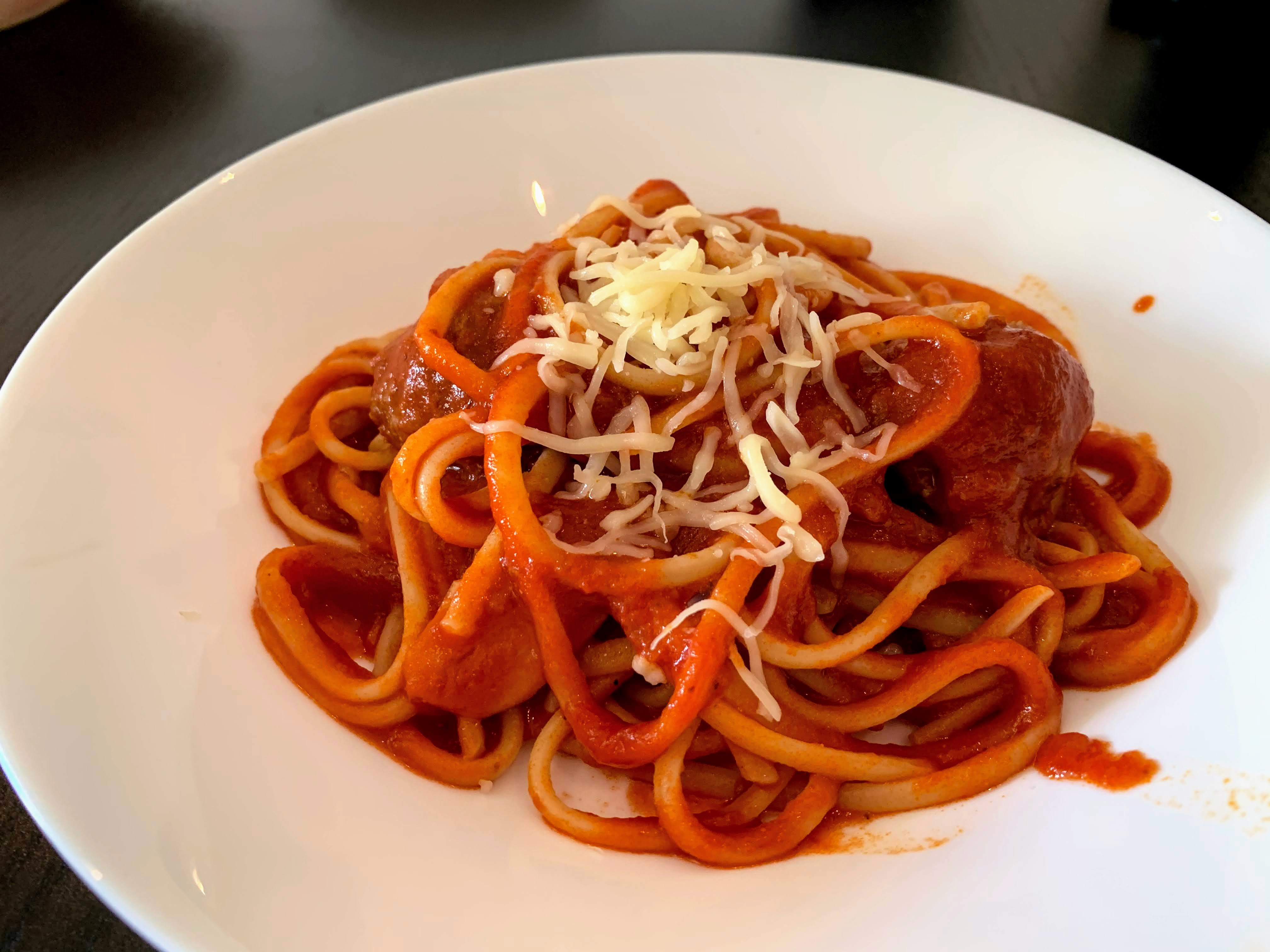 Douro red is mostly blended with multiple grapes but this is only Touriga Nacional. Mmmm, I am not a fan of it because it’s more intense and less smooth.Tried with croissant & sardine paste but still didn’t like it much.Lunch: Linguini with meatball @ 2:30 p.m.Dessert