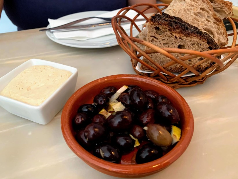 Pudim de Pão (Bread Pudding) 4.50€ & Mousse de Chocolate com Azeite e Flor de Sal (Chocolate Mousse with Olive Oil & Salt) 5€, both good with red wine