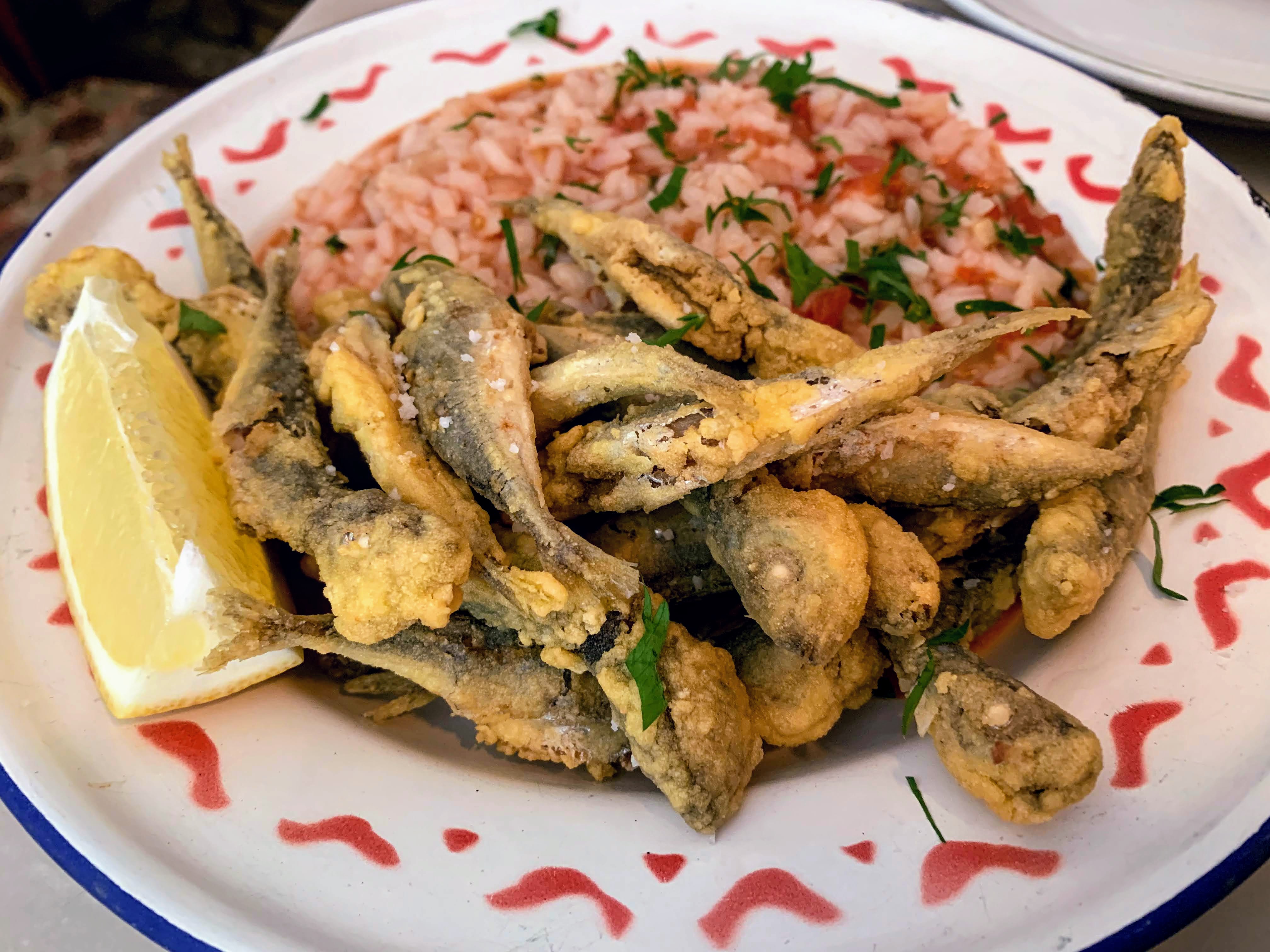 Joaquinzinhos a Arroz de Tomate (Fried Spanish mackerels & Tomato Rice) 11€