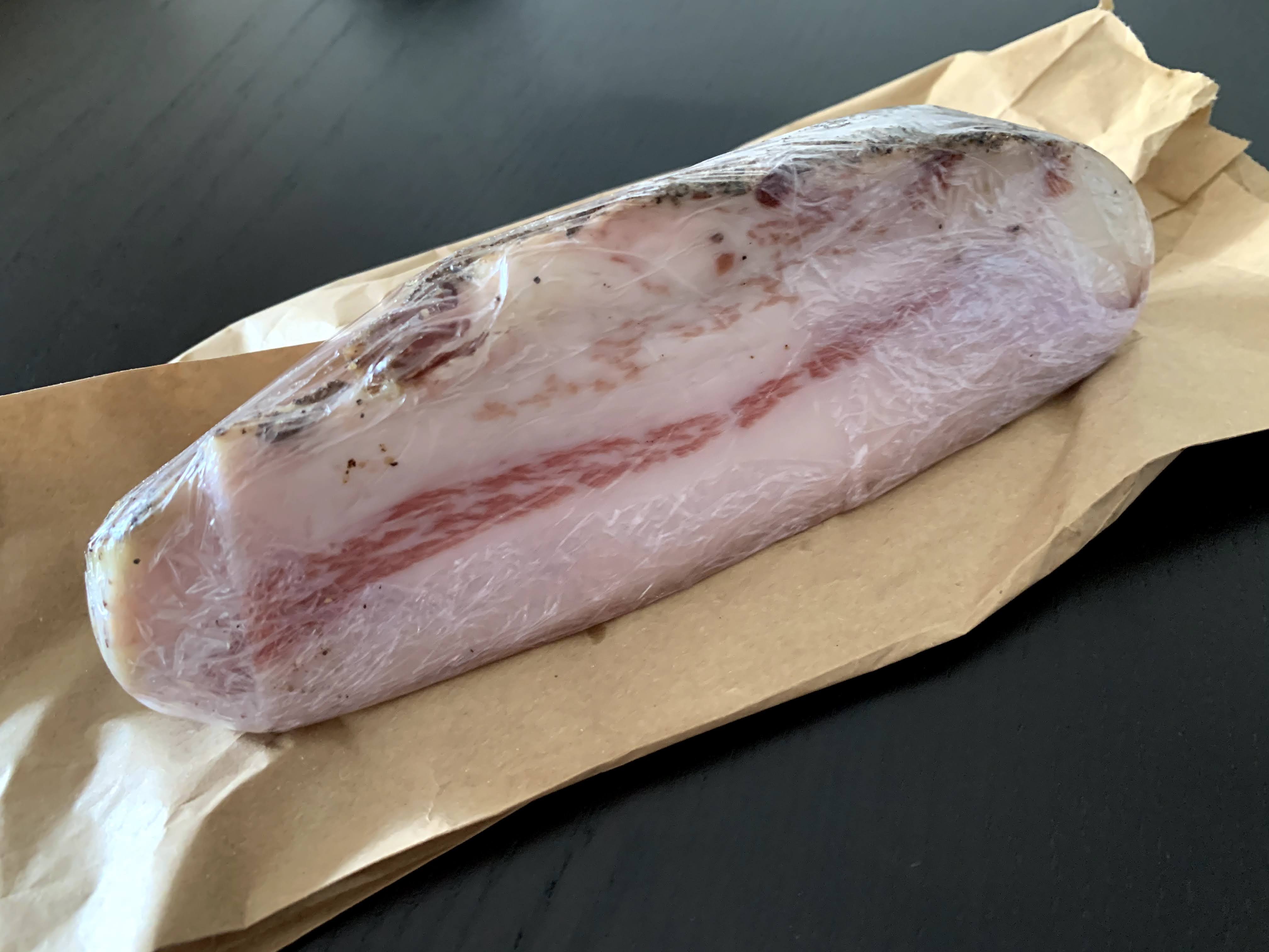 Fresh cheese tastes mild and smooth like dessert. Not sweet but texture is like pudding. 5 or 6 pieces of prosciutto was 1€.