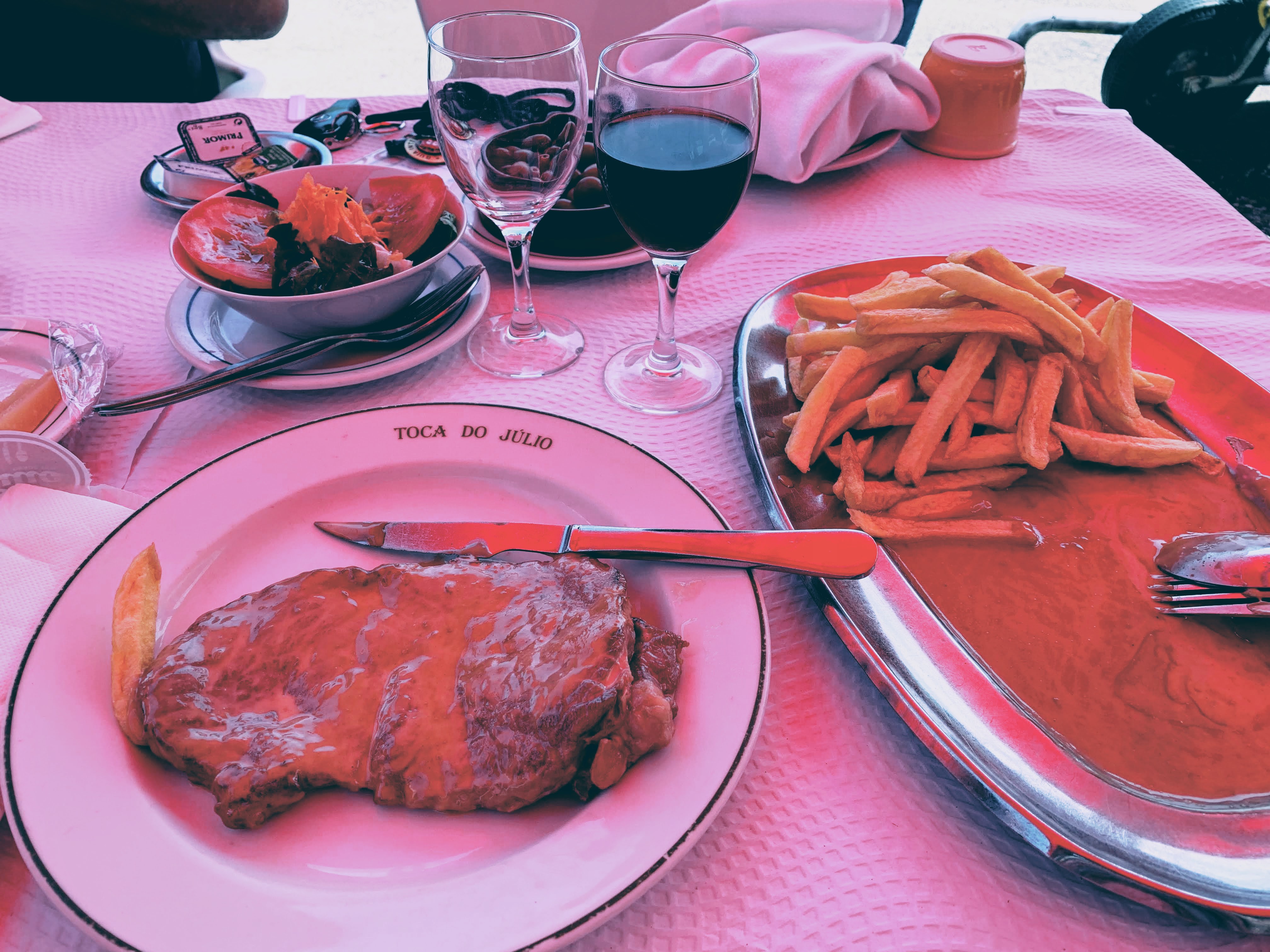 Arrived in Aveiro 12:10 p.m. First, we went to a restaurant on his list but had to wait for 2 hours without a reservation. So tried a restaurant my friend recommends. Steak and white wine were very good.